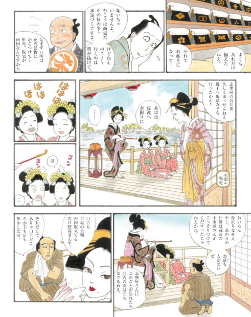 『百日紅』『合葬』『おーい、応為』と映画化作品も多く、没後も熱い支持を集める杉浦作品ですが、その中でも本作『花のお江戸の若旦那』は、洒脱でユーモアあふれる江戸の暮らしを、“粋”な若旦那・福太郎の目線で描く、「彩色江戸漫画」という珍しい作品です。