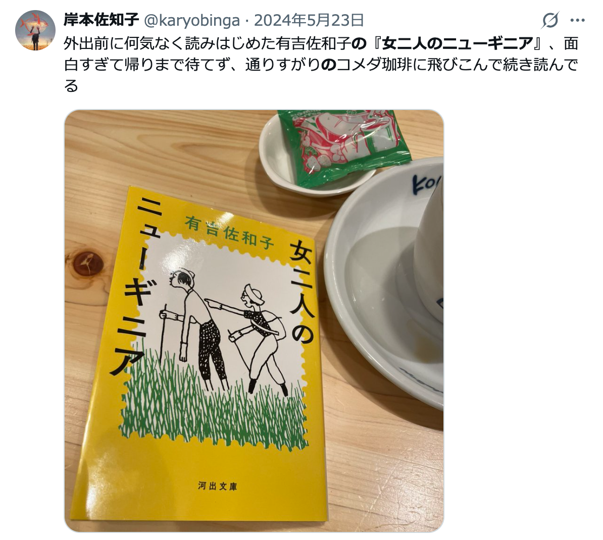 翻訳家、エッセイストの岸本佐知子さんも「ここ数年のあいだに読んだ本でもっとも衝撃的だったのが、有吉佐和子『女二人のニューギニア』(河出文庫)だ。」(日経新聞 2025/12/13)と語るほど。まったく文化の違う土地で、想像を絶する出来事が次々と起こりぼやき続ける有吉さんと、たくましく現地を調査する畑中さんとの丁々発止のやりとりが、時代を経ても古びない面白さ。